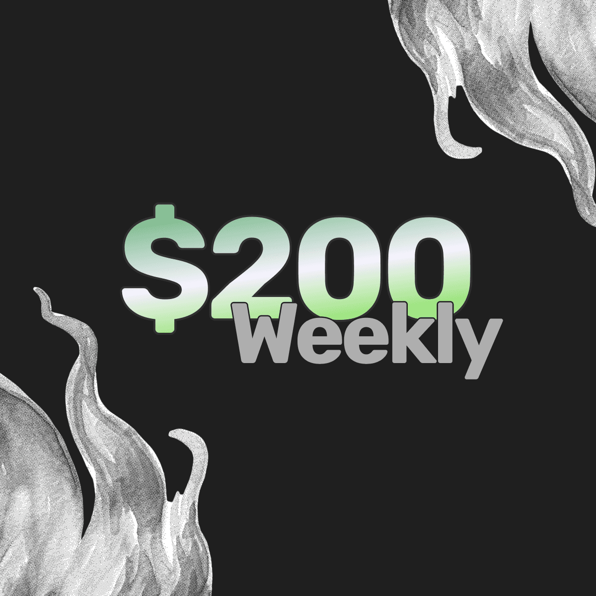 Top 2 referrers split $200 weekly, min $20K ref volume